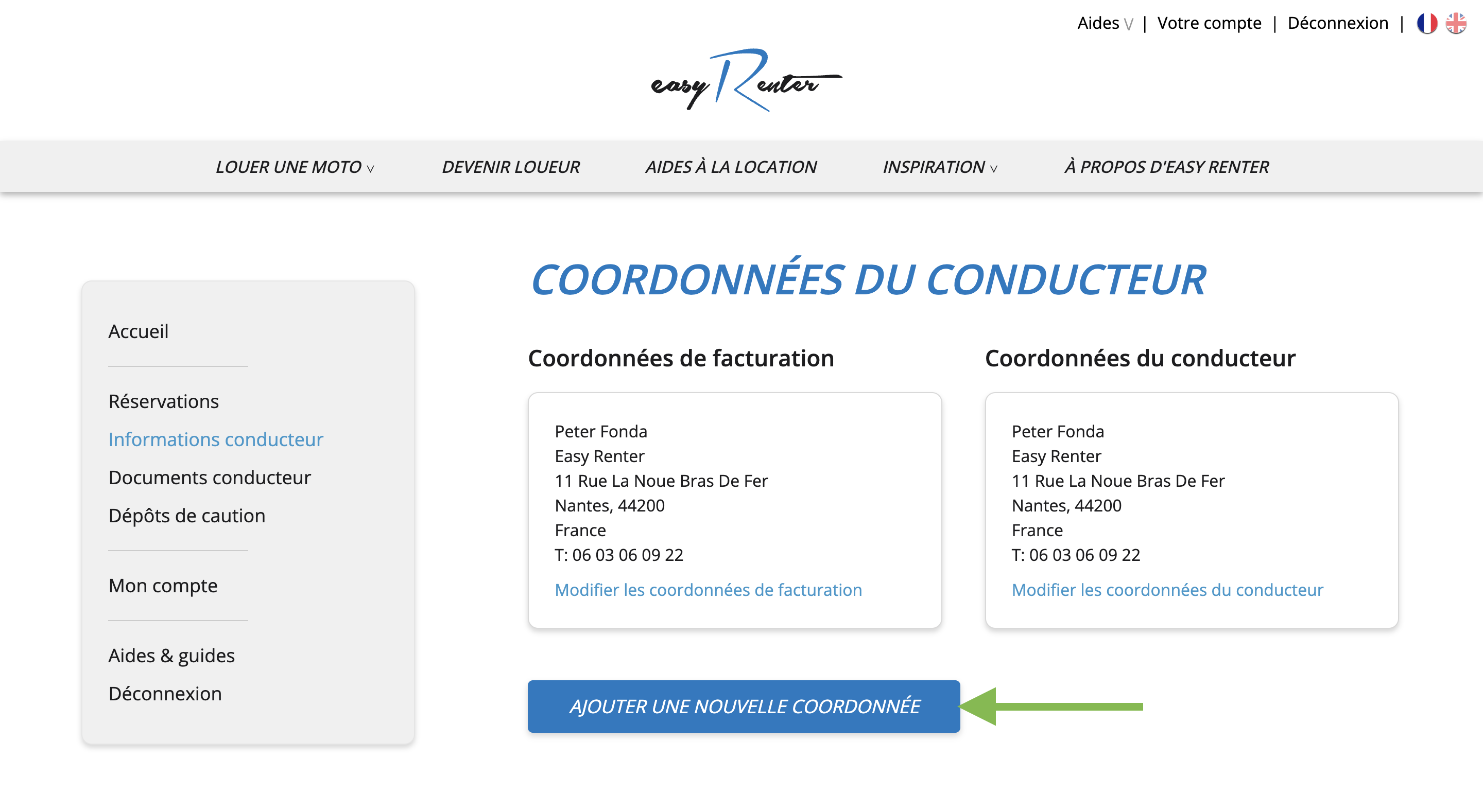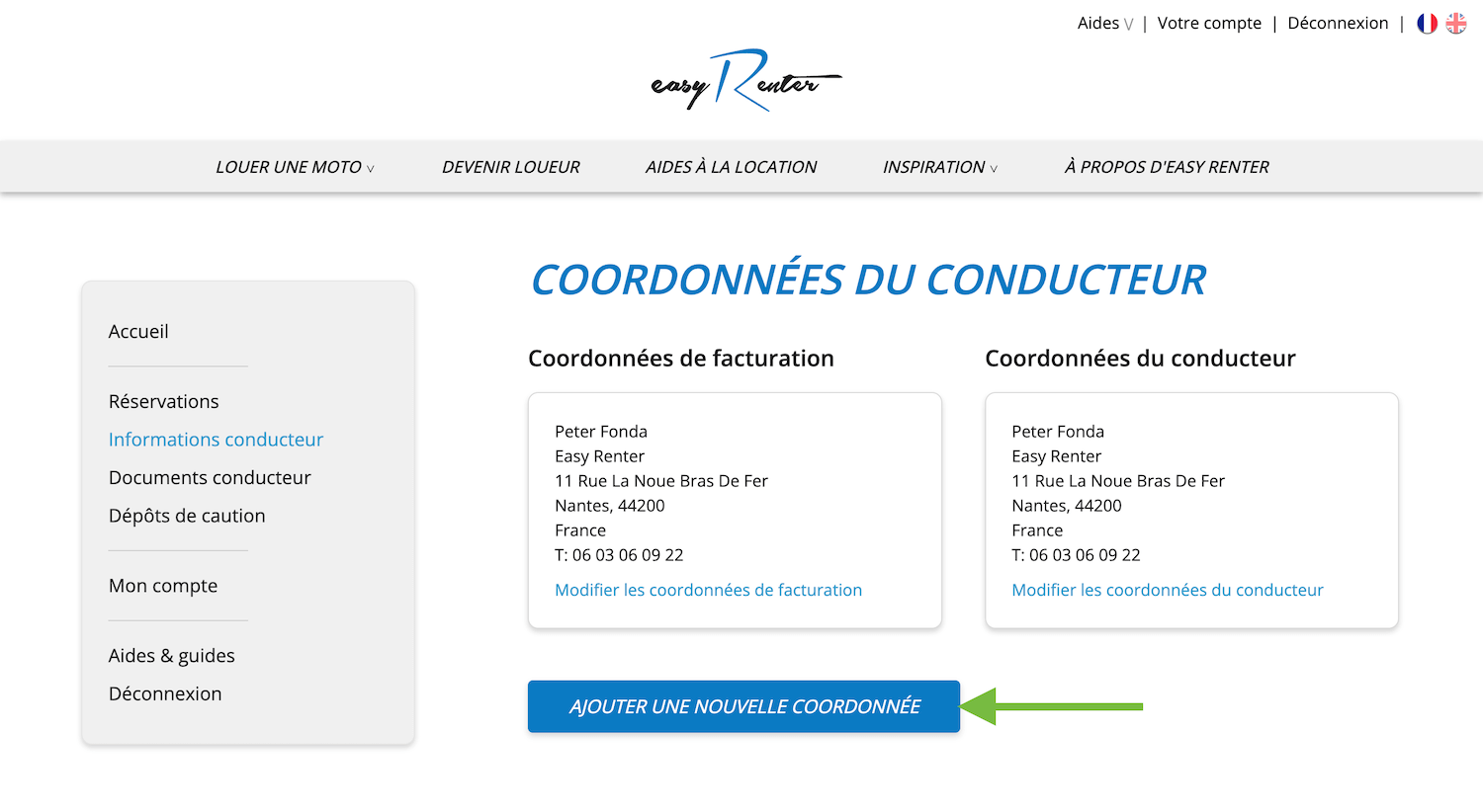 Si vous avez réservé une location pour un autre conducteur, il est important d’ajouter ses informations dans votre compte Easy Renter.